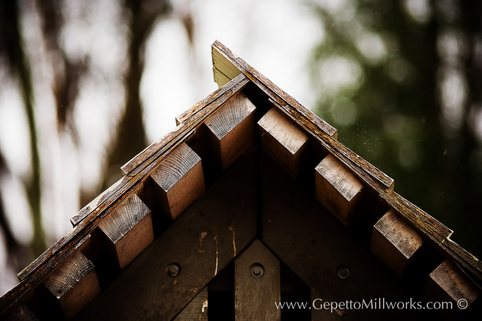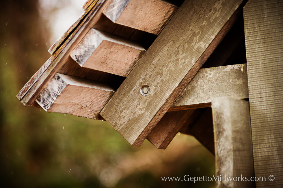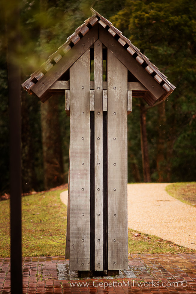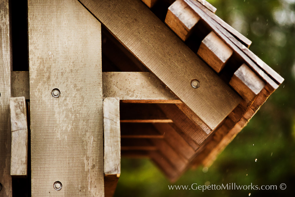 Unique solid wood construction utilizes a cedar to achieve the long lasting weather resistance of these solid wood mortised gates. Gepetto craftsmen took on the ambitious project of mortising through 8 inches of solid cedar, on an arc! We can stretch the boundaries of what you think is possible with wood!
